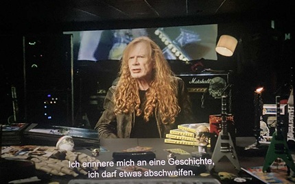 Als Bonus wird noch sein Track „Ride The Lightning“ gebracht, in dem James nur die Lyrics mitgeschrieben habe. Dazu führt Dave an, dass er seinen Frieden mit den Members seiner alten Band, die er alle namentlich erwähnt, geschlossen habe. Das Teil in der Megadeth Interpretation kracht kantiger und kommt klar megadethmäßig. Ganz zum Schluss wird mal die Kameraeinstellung geändert und Dave spricht nun vis a vis in die Linse, nennt uns alle Family und sagt fett Danke für alles. Das kommt sehr ehrlich; wir nehmen ihm das ab. Dieser Film, den Dave einfach ‚Album Listening Event‘ nennt, muss man sich nicht dringend auf DVD holen, ist aber definitiv interessant und kurzweilig. Es soll übrigens zwei Versionen dieses Streifens geben, eine von 108 Minuten und eine von 114, was mit dem Vorprogramm oder regionalen Unterschieden zu tun habe. Wir haben nach unserer Vorführung 109 Minuten gemessen. Aber warum der smarte Film eine FSK 16 Einstufung erhalten hat, ist uns schleierhaft.