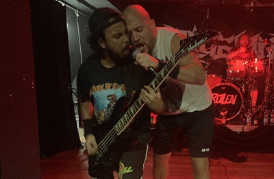 Jetzt dran ist der Hauptgrund unserer Anreise und unbestrittenen Höhepunkt des Abends. Der Schein des akustischen Intros vom Band trügt, denn dann explodieren Zerre mit dem Killer „Mouth Of Madness“ und absolut selbstbewusstem Auftreten. Shouter Nico, noch ein bierverspritzender Frontmann, macht selbst mal kurz den Stagediver. In Insiderkreisen stehen die Würzburger derzeit sehr hoch im Kurs. Die intensiven Liveauftritte um ihr grandioses Album „Scorched Souls“ haben sich schnell herumgesprochen, und auch ihr in Kürze erscheinendes Album „Rotting On A Golden Throne“, in das wir schon reinlauschen konnten, wird in diese Kerbe schlagen. Auch „Closer To Death“ und das neue „Pigs Will Be Pigs“ zünden sofort, in einer prallen Menge vor der Stage, so voll war es heute dort noch nicht. Genau jetzt bringt der Fünfer Metallicas‘ „Whiplash“, dass postwendend ein Circle Pit entsteht. In ihrem Zusammenspiel können wir eine Leichtigkeit beobachten, als machten die Wahnsinnigen das mehrmals täglich. Was für ein Abriss! Ein super Dingen, diese Dreiviertelstunde war definitiv für uns das Highlight heute.