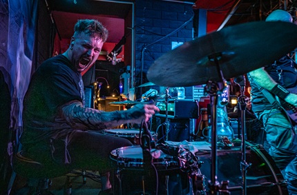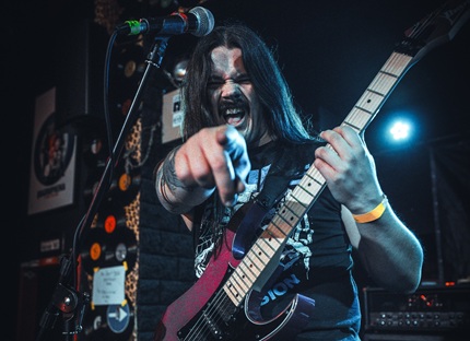Auf der Bühne wird die Handsirene angekurbelt. Warrant sind gut gelaunt und munter unterwegs, haben wir schon zur Band zuvor feststellen können, wie wir sie in der Audienz angetroffen haben. Der runderneuerte Vierer um Bassist und Shouter Jörg ist seit Anfang der Achtziger unterwegs und vermischt inzwischen locker viel altes und neues Songmaterial, sowie ihrem aktuellen Album „The Speed Of Metal“. Damit bringen sie den Laden Bewegung, denn es wird gut gezappelt und es fliegen Haare in der Menge. Irgendwie wird heute viel von der Abyss-Party gesprochen, die hier im Don’t Panic stattfindet, da steht uns wohl am 09. Mai einiges bevor. Uns jetzt grad hier im Pulk auch, denn der „Betrayer“ vom ersten Album wird angesagt, unser Songfavorit der Band. Bekommt auch ordentlich Applaus das Teil. Aber wie der aufmerksame Besucher von Warrant-Shows weiß, kommt noch einer, nämlich direkt nach der Frage: „Wollt ihr den Enforcer sehen?“ Zu dem Song entert der maskierte Axtschwinger die Bühne für ein paar optisch untermalende Faxen. Und das war es dann auch nach satten vierundfünfzig Minuten.