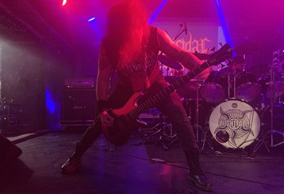 Als Suicidal Angels losthrashen, herrscht ab sofort eine ganz andere Stimmung hier im Gewölbe. Zwar spielen sie für die leider ausgefallenen Massacre, die viele Gäste heute sehr gerne gesehen hätten, bringen jedoch amtliche Geradeausschläge. Auch wenn man nicht voll drauf steht, darf man schon zugeben, dass der Vierer live eine Macht ist. Das genügt ihnen, schon im zweiten Track zum Pit aufzurufen. Allerdings machen mehr Leute dafür Platz, als Kreisläufer dran teilnehmen. Das ältere Publikum hat offensichtlich weniger Bock, das Gerenne mitzumachen. Aber beim Fistraisen und Hey-Rufen sind sich wieder alle einig, Der knallige Doppelschlag von „Purified By Fire“, und „The Return Of The Reaper“ vom aktuellen Album „Profane Prayer“ lässt die Riesenlücke langsam zuwachsen. Das Verlassen der Bühne schon nach zwanzig Minuten, als ob man jetzt schon Zugaben spielen wollen würde, hinterlässt Fragezeichen und beeindruckt nicht wirklich. Aber im Anschluss der gut vierzig performten Minuten „Sharp Dressed Man“ von ZZ Top ziemlich laut abspielen zu lassen, kommt jedenfalls voll gut.