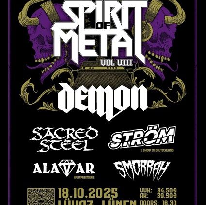 Aber damit immer noch nicht genug, nein. Den krönenden Abschluss dieses bisher schon grandiosen Billings wird kein geringerer als die NWoBHM Legende Demon geben. Der dritte und letzte Auftritt in Deutschland in diesem Jahr wird auf dem ‚Spirit Of Metal VIII‘ stattfinden und wer dieses Jahr schon die Chance hatte, diese Band live zu sehen, weiß, was die Briten für einen Abriss abliefern.