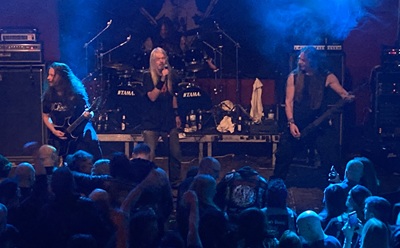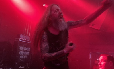 Mittlerweile ist es echt spät geworden, und die bis jetzt sechsfache Dosis Death Metal hat durchaus Kraft gekostet … aber egal! Mit einer knappen halben Stunde Verspätung entern die Veteranen Asphyx die Bühne. Es gibt wohl kaum einen anderen Frontman, der den Death Metal mehr verkörpert als Martin van Drunen. Der Holländer nutzt den für die Band ersten Gig des Jahres 2026 zunächst, um allen Anwesenden ein frohes neues Jahr zu wünschen. Dann geht´s nach dem Intro des Debütalbums und „Vermin“, dem Opener desselben, direkt in die Vollen. Es dauert nicht lange, bis der erste Pit entsteht, und auch Crowdsurfer lassen nicht lange auf sich warten. Kleine Abstriche gibt es beim Sound, bei dem ich die sägenden Gitarren zu weit im Hintergrund wahrnehme. Vielleicht liegt es auch am übermotivierten Einsatz der Nebelmaschine, die zeitweise bis ins Café gereicht hat. Ist aber Jammern auf hohem Niveau, denn insgesamt betrachtet, beweisen Asphyx wieder mal, dass sie live eigentlich immer eine Bank sind. Songtechnisch gibt es einen Querschnitt durch ihr gesamtes Schaffen. Den Höhepunkt bildet wie üblich das Götterwerk „The Rack“, welches Martin mit den Worten „wenn ihr das Nächste nicht kennt, kennt ihr uns nicht!“ einleitet. Wie immer eine Offenbarung für alle Liebhaber des Oldschool Death Metal! Nach einer weiteren Zugabe endet ein langer Death Metal Marathon und hinterlässt ebenso glückliche wie kaputte Fans. Husky (der übrigens durch sein sehr cooles, aber eher unerwartetes Bad Religion Shirt auffällt) verteilt noch großzügig Drumsticks, und dann macht sich die Meute auf den Heimweg. Ein rundum gelungener Abend! (Felix Schallenkamp)