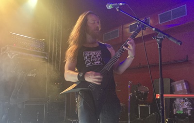 Bei einer Band wie Slaughterday wissen wir genau, was wir bekommen. Weil wir die Todesbleimannen aus Leer schon einige Male live gesehen haben, unter anderem mit ihren Kumpels von Atomwinter, und sie noch nie enttäuscht haben, ist das heute auch wieder so, haben wir schon vorzeitig beschlossen. Und tatsächlich, sie bekommen bereits mit den ersten Tönen den Stall auf ihre Seite, da scheint der Slot des Co-Headliners doch angemessen. Und um es gleich vorweg zu nehmen, im Laufe des Gigs wird es keine Qualitätseinbrüche geben. Ganz im Gegenteil, das gut gefüllte Turock scheint mit den Friesen, bei denen auch der umtriebige Blondbasser Ulf zockt, sehr zufrieden zu sein. Mit „Cult Of The Dreaming Dead“ wollen die Niedersachsen schon zum Schluss kommen. Als noch das ganz neue „Enthroned“ und das ganz alte „Cosmic Horror“ gespielt werden, erinnern sie an ihr neues Album „Dread Emperor“, das bereits in den Startlöchern steht und bald seine Abnehmer finden sollte. Ein Blick auf die Uhr verrät uns, dass sie tatsächlich eine satt lange neunundfünfzigminütige Show gezockt haben. So verfliegt die Zeit und es wird für den heutigen Headliner angerichtet, wobei Drummer Husky selbst mit anfasst. (Joxe Schaefer)