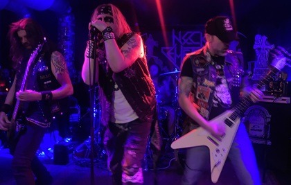 Heute ist wieder so ein Tag, an dem auch ein paar Sachen rund laufen. Da gönnt man sich doch zum Ausklang mal ein nettes Konzertchen. Außerdem gehört der Oldschooler einfach hier hin, in den Bochumer Trompetenkeller, wenn sich eine solche Band aus Peru ansagt. Also sind wir hier und lassen uns zunächst einmal von Neck Cemetery entertainen. Die Jungs haben wir schon mit Iron Fate in Lünen gesehen, wie auch vor den Wildhearts in Essen und auf dem Rock Hard Festival. Pünktlich zur Tagesschau ertönt das Intro für ‚Jens And The Peters‘, wie der Typ neben mir meint, und die Rauchsäulen geben schon Vollgas, bevor ein Ton gesungen wurde. Shouter Jens haben wir grad noch am Tresen gesehen, und dass er sich ein nettes Facepainting aufgelegt hat, irgendwas zwischen Gene Simmons und Alice Cooper. Passt auch zu seiner folgenden Performance, mal mit Maske, mal im Dialog mit einem Puppenkopf in der Hand. Auf der Bühne gibt es vom Start weg viel Action, vor allem durch die beiden flinken Flying V Gitarristen. Das ergibt vor der Bühne viel Gezappel und gereckte Fäuste, während immer wieder Rauchsäulen, sowie auch Feuerwerk vorm Drumkit abgeschossen wird. „Midnight“ nennt sich ein neuer Song von einer bald erscheinenden Platte, und zum Schluss stampft ihr quasi-Anthem und Ramones-Cover „Pet Cemetery“ nur halb so schnell los, wie es beendet wird. Das war nun eine Stagezeit von achtundvierzig kurzweiligen Minuten, damit sollte das Publikum für die nächste Band ziemlich locker geworden sein.