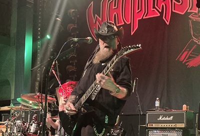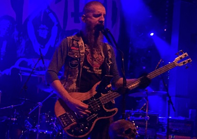 Als das nächste Intro abgespielt wird, sehen wir auf den Brettern zwei weit voneinander aufgestellte Mikrofonständer, wie wir das inzwischen von Whiplash gewohnt sind. Zuletzt gesehen haben wir sie nämlich so im Turock zu Essen, wie auch auf dem Der Detze Rockt Festival. Die New Jersey Thrasher waren der Hauptgrund für unsere Anreise, das dürfen wir vorweg schon verraten. Darüber, was genau die Setlist in laminierter Form zu Füßen von Gitarrist und Shouter Tony Portaro zu bedeuten hat, kann man spekulieren; sie kommt jedoch auf der Tour bestimmt öfter zum Einsatz. Der Dreier kann sich auf erstklassigen Sound berufen und die Speed von „Spit On Your Grave“ schafft ordentlich Bewegung im Pulk. Als „Power Thrashing Death“ durch ist, hat das Chronometer eine Länge von definitiv kurzweiligen siebenundvierzig Minuten gemessen.