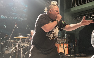 Inzwischen ist es im Gruenspan ganz schön voll geworden, aber die Balkone bleiben trotzdem geschlossen, und es gibt noch immer Tickets an der Abendkasse. Jetzt geht der Punk ab, im wahrsten Sinne. Denn wie eingangs erwähnt, hat heute jede der vier Bands ihre eigene Stilschublade. Mit wesentlich mehr Bewegung in den ersten Reihen, und bei wesentlich mehr Licht übrigens, kloppen die Varukers drauf, etwa so wie wir das von The Exploited kennen. Die seit 1979 Aktiven kommen letztendlich auf siebenunddreißig Minuten Spielzeit. Aber von den nassen Gesichtern, die danach aus den ersten Reihen nach hinten gehen, will sicher kein Schwein etwas über die genaue Spieldauer wissen. Es war jedenfalls zu kurz!